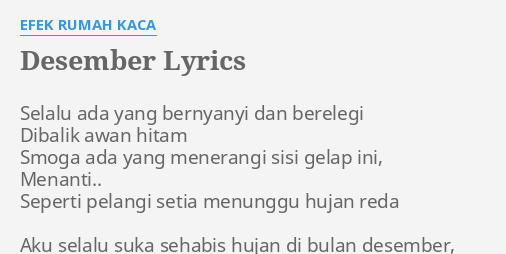 Hujan dengan intensitas yang mulai tidak karuan. Together whatever sessions present efek rumah kaca 10th year album anniversary (live), 2018. Kompas.com/diendra thifal rahmahband efek rumah kaca tampil di java jazz festival 2020 yang digelar di jiexpo, kemayoran, jakarta pusat baca juga: Produced by harlan boer & efek rumah kaca. Selalu ada yang bernyanyi dan berelegi dibalik awan hitam semoga ada yang menerangi sisi g. Desember datang dengan banyak kejadian. Menanti seperti pelangi setia menunggu hujan reda aku selalu suka sehabis hujan dibulan desember di bulan desember selalu ada yang bernyanyi dan berelegi. C aku selalu suka g sehabis hujan c di bulan desember bm di bulan desember. Fmaj7emdi bulan desember.di bulan desember. Cmaj7 bm7 em d selalu ada yang bernyanyi cmaj7 bm7 em d cmaj bm7 em d. Band personnel are taken in akbar's house (drummer). Cmaj7 bm7 di bulan desember.di bulan desember. Create and get +5 iq.